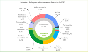 Como consecuencia de las particularidades climáticas y geográficas de nuestro país, el objetivo principal para la descarbonización antes de 2050 se apoya fundamentalmente en la energía eólica y fotovoltaica, con asistencia de la hidráulica y otras renovables. Debido a la expansión de los paneles solares y las turbinas de viento como resultado de su progresiva mejora técnica, su instalación y su eficiencia en la generación de electricidad, se ha contemplado la energía hidroeléctrica como complemento ideal para estabilizar la oferta. Sobre todo, respecto a las posibilidades de almacenamiento que una central hidroeléctrica de bombeo nos ofrece. Con una infraestructura cada vez más renovable, España ha superado por primera vez en el año 2023 el 50% de generación anual.