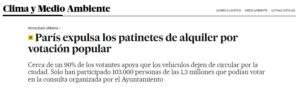 Situaciones como la que se ha vivido recientemente en París, donde el ayuntamiento ha dejado en manos de un sufragio ciudadano dirigido solo a un grupo de población minoritaria en el uso del servicio, el futuro de los patinetes compartidos, dan muestra de lo poco preparados que se encuentran los municipios, no solo en España, para definir las reglas de implementación de este tipo de servicios.
