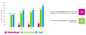 Hay consistorios que fomentan los modelos station-based frente al free floating, por el que los operadores del servicio llegan a acuerdos con parkings u otros espacios para disponer de plazas específicas, si bien esta modalidad cuenta con una menor visibilidad del servicio frente a la operativa en vía pública, el mensaje a la ciudadanía en la promoción de una movilidad eléctrica y compartida se mantiene por el reclamo visual de su uso y campañas impulsadas en redes sociales.