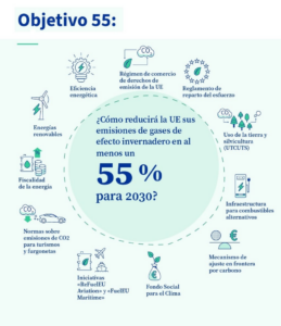 En el marco del paquete «Objetivo 55» (objetivo climático de la UE de reducir las emisiones en al menos un 55 % de aquí a 2030), la Comisión Europea, junto al Consejo y al Parlamento Europeo, han acordado la prohibición de venta de vehículos nuevos que no sean cero emisiones a partir de 2035 en territorio comunitario. Este acuerdo adelanta el compromiso adquirido por España en la Ley de Cambio Climático y Transición Energética de 2021, de que no más tarde de 2040 todas las ventas de vehículos sean vehículos con emisiones de 0 gCO2/km.