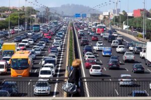 Imagen de la TF-5 a la altura de La Laguna, prácticamente colapsada, por donde circulan más de 100.000 los días de mayor afluencia. Fuente: Sergio Méndez, Diario de Avisos.
