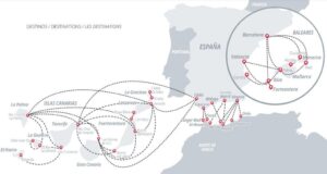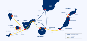 Rutas marítimas actuales entre islas, con península, Marruecos e Islas Baleares de la compañía Naviera Armas. Fuente: logistica.trasmediterranea.es